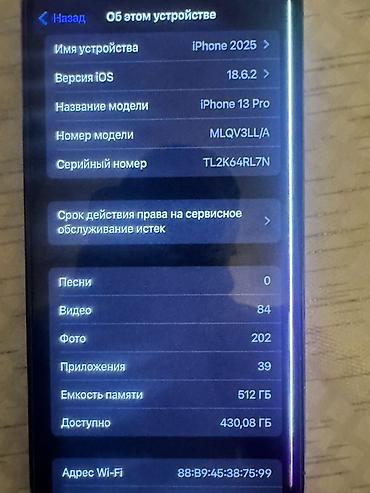 - Модель: iPhone 13 Pro (номер модели MLQV3LL/A).