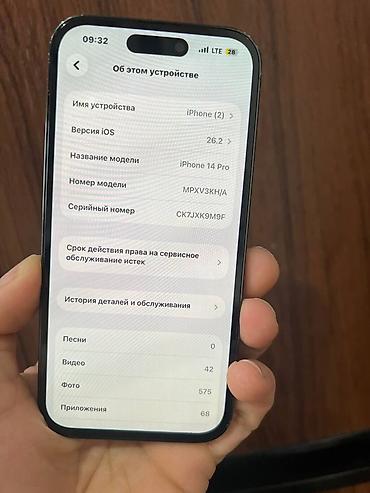 Продается айфон 14про состояние отличное, по бокам есть царапины память 256гб Акб 78% true tone✅ face id✅ цена 45000сом торг есть обмен рассматриваю