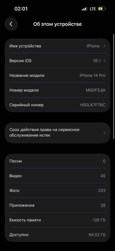 Продам iPhone 14 Pro 📱 Цвет: серый (Space Gray) 💾 Память: 128 GB 🔋 Аккумулятор: 94% 📦 Состояние: отличное — Всегда носился в чехле — Без сколов и трещин — Работает идеально — не скрывался