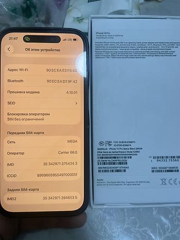 IPhone 14 Pro, 256 ГБ, Черный, Коробка