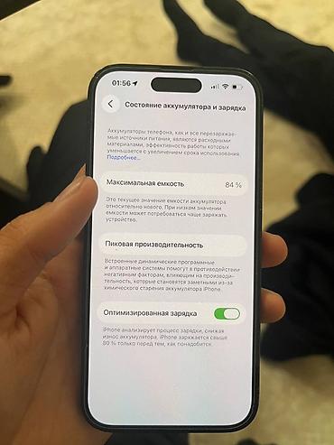 - Аккумулятор: максимальная емкость 84%, включена «Оптимизированная зарядка»