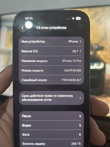 IPhone 14 Pro, 256 ГБ, цвет Deep Purple Характеристики: - Модель: iPhone 14 Pro (MQ1F3X/A видно на фото экрана “Об этом устройстве”) - Память: 256 ГБ (доступно ~239 ГБ) - Экран: 6.1", OLED Super R...