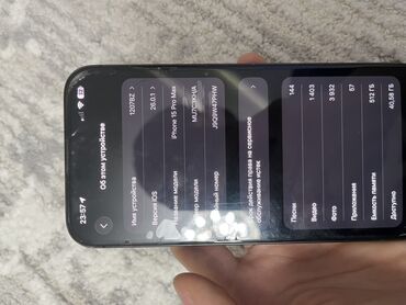IPhone 15 Pro Max, 256 ГБ Характеристики и детали: - Модель: iPhone 15 Pro Max (номер модели MU6R3J/A, серийный номер виден на фото настроек) - Память: 256 ГБ, свободно ~70,45 ГБ - Цвет корпуса: с...