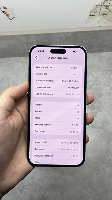 IPhone 14 Pro Max, Б/у, 512 ГБ, Deep Purple, Кабель, Коробка, 82 %