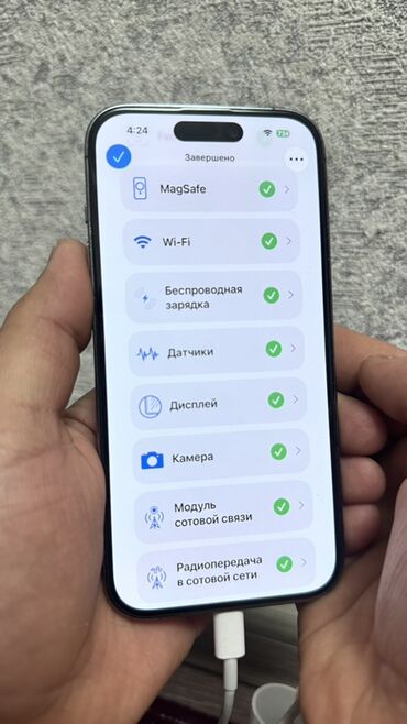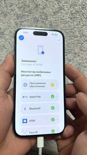 - Встроенные датчики, модуль сотовой связи и радиопередача – проверены через «Инспектор мобильных ресурсов (MRI)»; отмечены галочками Apple Pay, Bluetooth, eSIM, Face ID, MagSafe, Wi‑Fi, беспроводная зарядка, датчики, дисплей, камера, модуль сотовой связи и радиопередача.