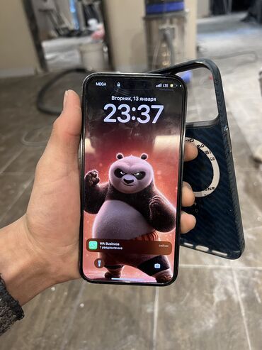 На экране установлены актуальные iOS‑виджеты; устройство работает, ловит сеть LTE, Face ID активен. Отличный вариант для фото/видео и игр благодаря ProMotion и A16.