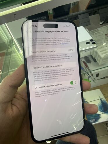- Наклейка на корпусе: “14 PRO MAX, 256GB, АКБ 80%” — заявленный уровень емкости батареи 80%.