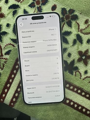 iPhone 14 Pro Max 128 GB Продаю iPhone 14 Pro Max в отличном состоянии. • Память: 128 ГБ • iOS: 18.6 • Face ID — работает • True Tone — работает • Все функции исправны • Влага и ремонты — не...