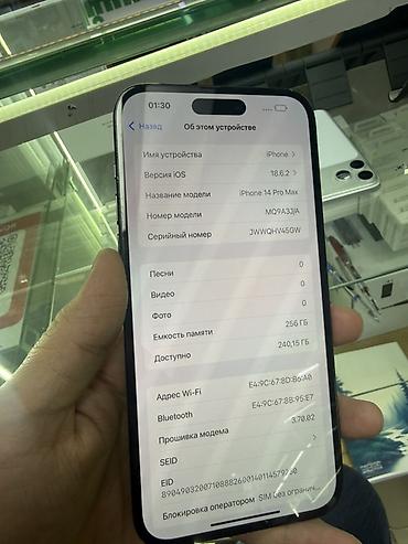 IPhone 14 Pro Max, 256 ГБ, цвет Space Black. Наклейка на корпусе: «14 PRO MAX, 256GB, АКБ 80%».