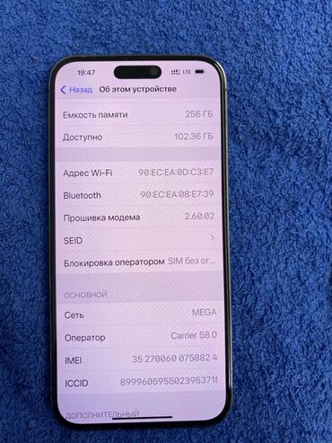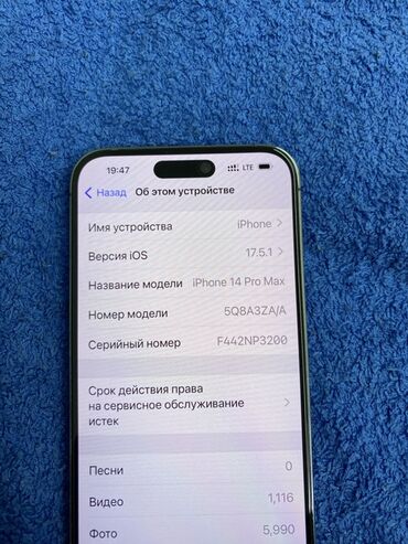 IPhone 14 Pro Max, 256 ГБ, цвет Deep Purple Характеристики: - Модель: iPhone 14 Pro Max (номер модели MQ8A3ZA/A) - Память: 256 ГБ (доступно ~242 ГБ на момент снимка) - Экран: 6.7", OLED Super Reti...