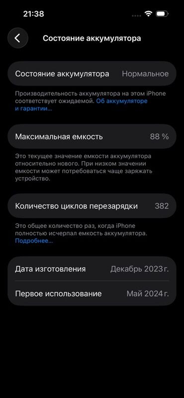 📱 iPhone 15, 128 ГБ — Titanium Black Продаю iPhone 15 на 128 ГБ в отличном состоянии. Телефон работает без нареканий — все функции исправны, Face ID, камеры, динамики и т.д. 🔋 Аккумулятор 89%, зар...