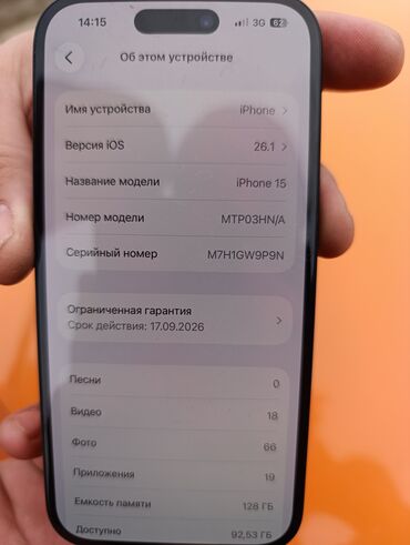 - Модель: iPhone 15 (номер модели MTP03HN/A)