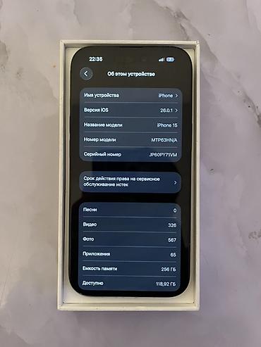 - Память: 256 ГБ (доступно ~118,92 ГБ на фото)