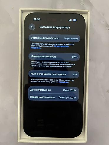 - Аккумулятор: максимальная ёмкость 87%; количество циклов перезарядки 627 (по скриншоту «Состояние аккумулятора»)