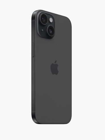 IPhone 15 — смартфон Apple с дисплеем Super Retina XDR и вырезом Dynamic Island. Цвет: черный. Корпус с матовым стеклом и алюминиевой рамкой, плоские грани.