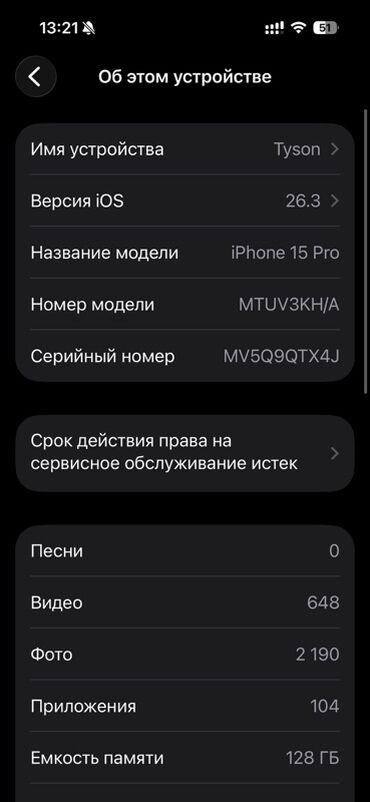 - Модель: iPhone 15 Pro (номер модели MTUV3KH/A)