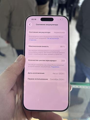 IPhone 16 Pro, Б/у, 256 ГБ, Natural Titanium, Зарядное устройство, Защитное стекло, Чехол, В рассрочку, 99 %