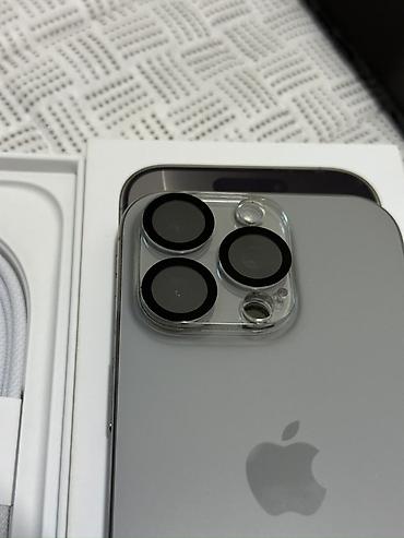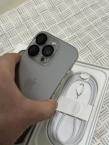 IPhone с тремя основными камерами и LiDAR, цвет серебристый/белый. Корпус с матовым стеклом и плоскими стальными гранями, Dynamic Island. В комплекте: фирменная коробка, кабель USB‑C — USB‑C в оплётке, скрепка для лотка SIM/карты eSIM.