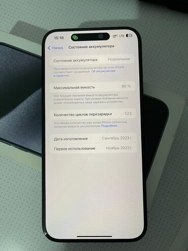IPhone 15 Pro Max, 256 ГБ - Модель: iPhone 15 Pro Max (номер модели MU773AA/A) - Память: 256 ГБ, доступно ~220,6 ГБ - iOS: версия 26.2 - Цвет корпуса: темный, плоские грани - Камеры: тройной модул...