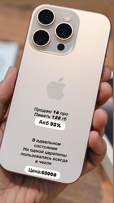 IPhone 16 Pro, 128 ГБ. Цвет — светлый (бежево‑золотистый). Аккумулятор — 93%.