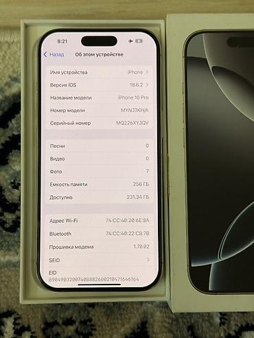 IPhone 16 Pro, Б/у, 256 ГБ, Коробка, 100 %