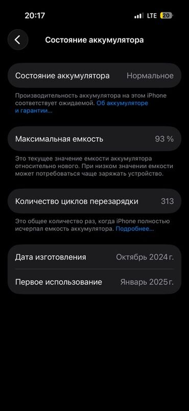 Продам IPhone 16 Pro Max, Black Titanium, 100 % АМЕРИКАНЕЦ в отличном состоянии Аккумулятор - Максимальная ёмкость: 100% - Количество циклов перезарядки: 132 - Дата изготовления аккумулятора: март ...