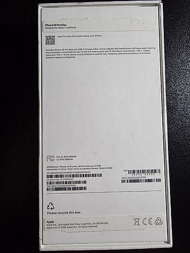 IPhone 16 Pro Max 1 Tb (1024 ГБ) с коробкой White Titanium (белый титан) Исключительно в идеальном состоянии (Брали в конце мая. В пользовании меньше года) АКБ 100% Полный комплект Цена 115тыс....