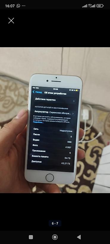 IPhone 8, 64 ГБ, цвет белый/«Silver» Характеристики и детали: - Модель: iPhone 8 (номер модели MQ6J2KH/A) - Память: 64 ГБ (доступно около 41,55 ГБ) - iOS: 16.7.12 - Экран , Touch ID на кнопке «Дом...