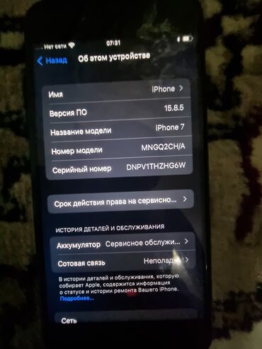 - Модель: iPhone 7 (отображается в настройках)