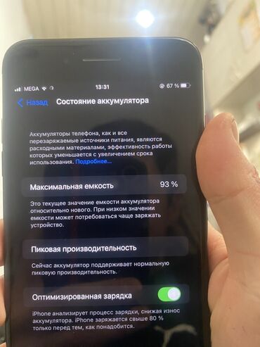 - Аккумулятор: максимальная ёмкость 93%, пиковая производительность нормальная, включена функция «Оптимизированная зарядка»