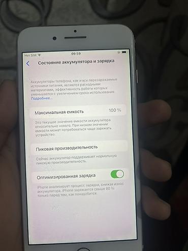 - Показатель «Состояние аккумулятора» на фото: максимальная ёмкость 100%, включена «Оптимизированная зарядка»