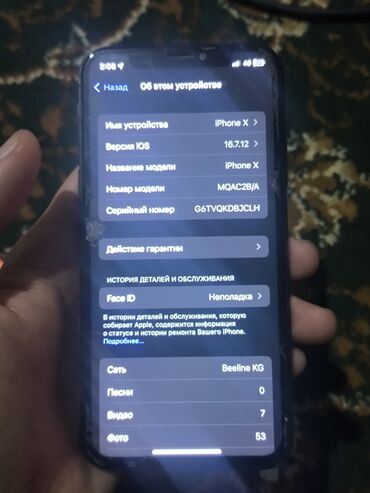 iphone X память 256 Гб цена 5300с. состояние хорошое ёмкость батарея 78%. чехол в комплекте есть оригинальная зарядка есть. ...