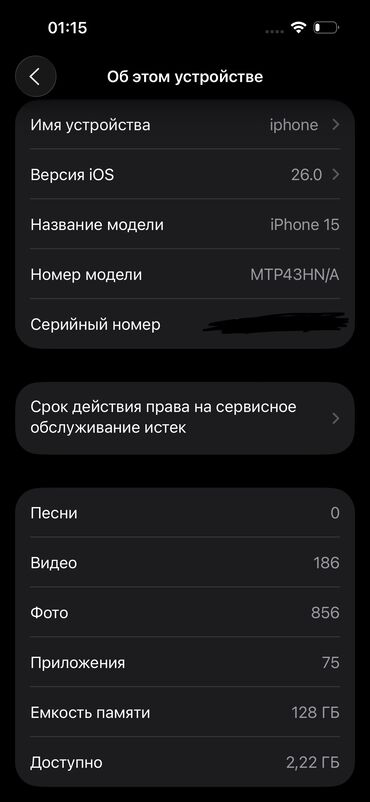 Продается IPhone 15 покупала год назад аккумулятор: 86% цена: 45 000 сом в составе: коробка, документы