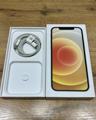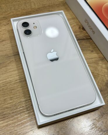 IPhone 12, Б/у, 128 ГБ, Белый, Кабель, Коробка, Чехол, 100 %