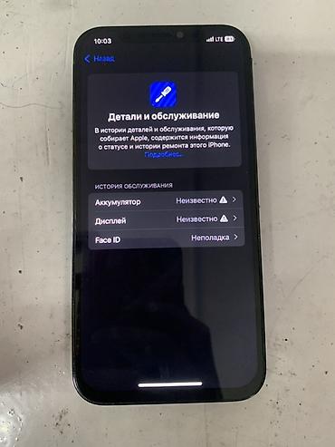 - Раздел «Детали и обслуживание»: для аккумулятора и дисплея статус «Неизвестно». Для Face ID — «Неполадка».
