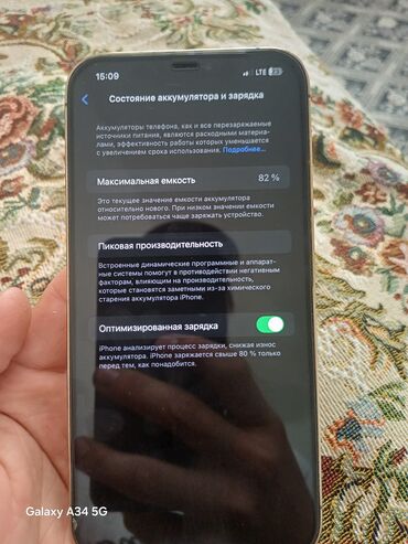 IPhone 12 Pro, Б/у, 128 ГБ, Золотой, Зарядное устройство, Чехол, Кабель, 76 %