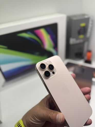 IPhone 16 Pro, Б/у, 256 ГБ, Desert Titanium, Зарядное устройство, Защитное стекло, Чехол, В рассрочку, 100 %