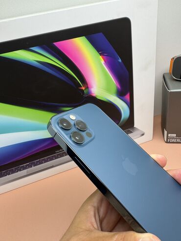 IPhone 12, Б/у, 256 ГБ, Pacific Blue, Зарядное устройство, Защитное стекло, Чехол, В рассрочку, 100 %