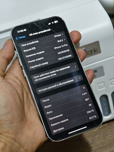 IPhone 14 Pro, 256 ГБ Экран и батарея заменены на оригинал Все Работает отлично 👍 - Модель: iPhone 14 Pro (MQ173J/A) - Память: 256 ГБ, доступно ~239,6 ГБ - Цвет: светлый (серебристый/белый оттен...