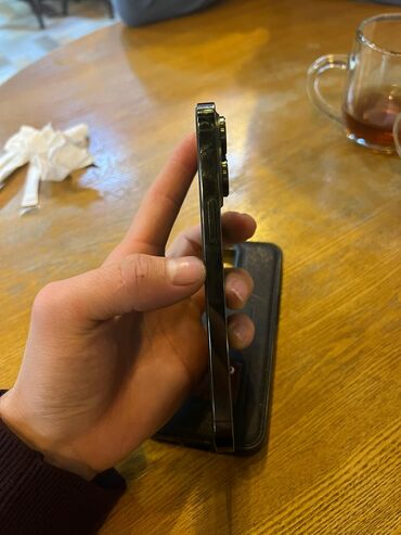 IPhone с тройным модулем камер Pro-серии, тёмно‑зелёный цвет корпуса.