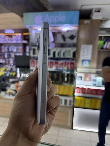 Apple iPhone (линейка с двумя крупными диагональными камерами). Цвет: белый/«Starlight». Корпус с плоскими гранями, алюминиевые рамки, матовое стекло на задней панели. Разъём USB‑C отсутствует — классический Lightning. Лоток для SIM на левом торце, кнопки громкости и переключатель беззвучного режима.