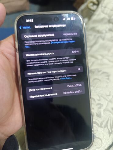 - В разделе «Состояние аккумулятора» указано: дата изготовления — июнь 2025 г., первое использование — сентябрь 2025 г.