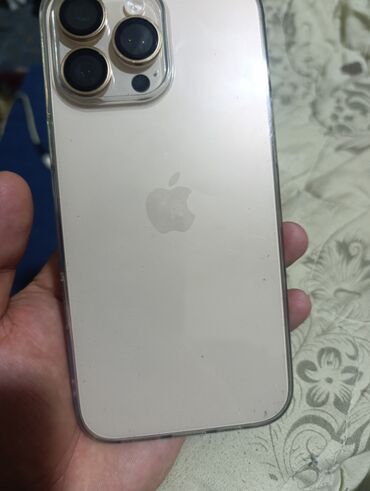 IPhone с Dynamic Island, цвет светлый (задняя панель — светло-бежевый/кремовый), в прозрачном чехле.