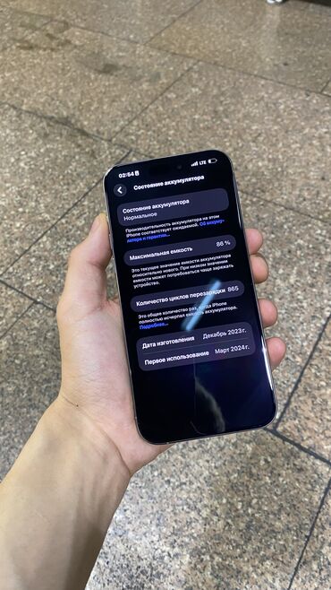 IPhone 15 Pro Max, Б/у, 256 ГБ, Серебристый, Зарядное устройство, Чехол, Коробка, 86 %