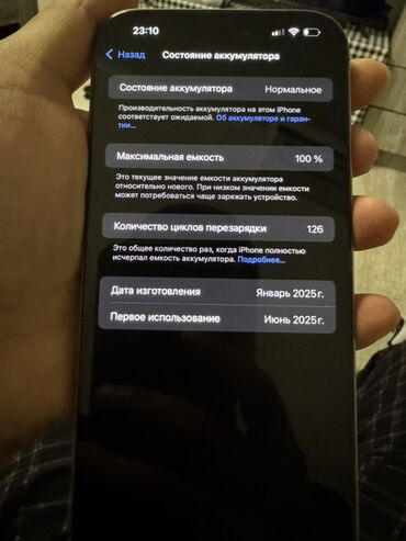 iPhone 16 Pro MaxСостояние аккумулятора, %:
