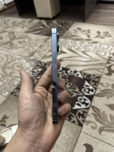 IPhone (линейка Pro) в цвете голубой/титановый.