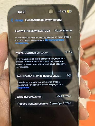 - Состояние аккумулятора по iOS: максимальная емкость 90%.