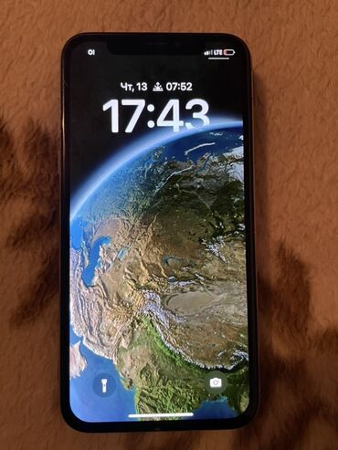 IPhone X, 5.8" Super Retina OLED (2436×1125), Face ID. Цвет корпуса — серебристый, задняя крышка стеклянная, рамка из нержавеющей стали. Двойная основная камера 12 МП (широкоугольная + телеобъектив) с портретным режимом и оптической стабилизацией; фронтальная камера TrueDepth. Поддержка LTE, Wi‑Fi, Bluetooth, NFC (Apple Pay), GPS. Разъём Lightning, стереодинамики, беспроводная зарядка Qi. На экране — iOS с виджетами и Always‑On уведомлениями, дата и время отображаются корректно.