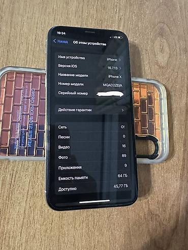 IPhone X, 5.8" Белый память 64гб состаяния соска АКБ 100 без тру тона зарядка держит хорошо комплект 4чехла хорошие чехлы все стоит по 300сом
