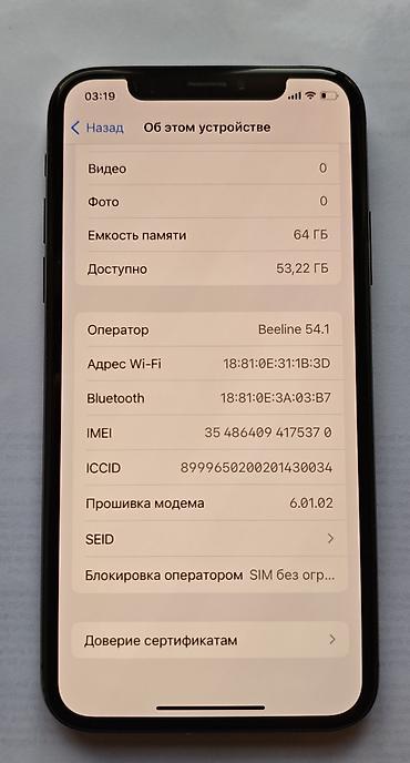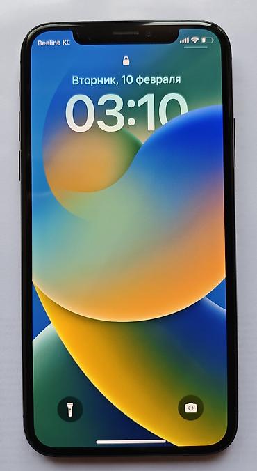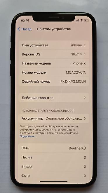 IPhone X, модель MQAC2VC/A, серийный номер FK1XKPGJJCLH. Цвет — Space Gray. Экран 5.8" Super Retina OLED с вырезом под Face ID. Установлена iOS 16.7.14.